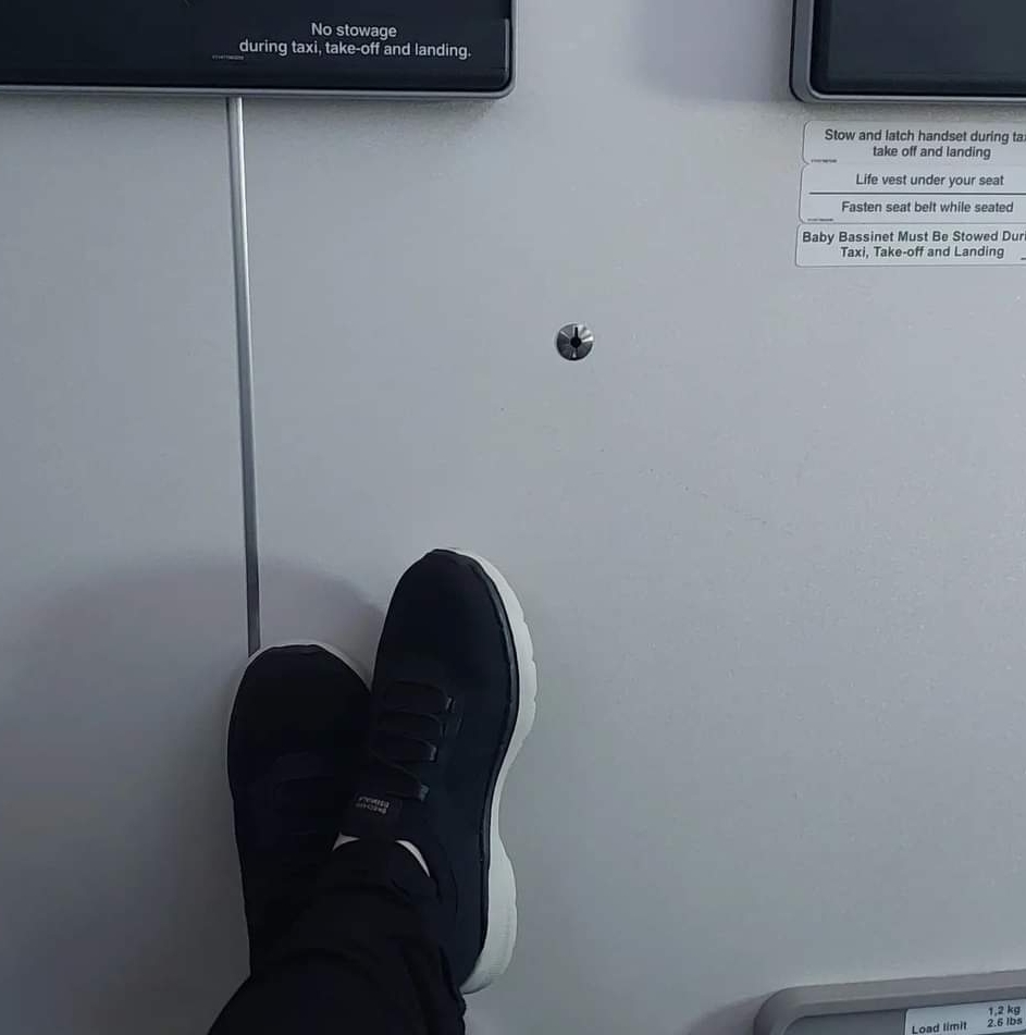 But on the decidedly bright side, the newly paired seats were in the first economy row! So at the trifling inconvenience of stowing all our stuff on high, we scored bonus legroom – and freedom to leave our seats without apologising to strangers whose laps we’d just fallen into…